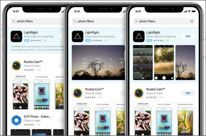 So sehen die Search Ads im App Store aus: Drei Beispiele für verschiedene Formate (Bild: Apple)
