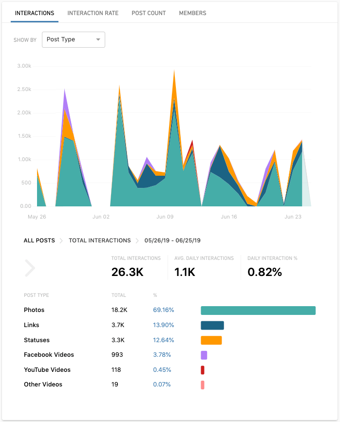 Wie effektiv eine gute Gruppen-Strategie sein kann, zeigt unter anderem der Vergleich von Bilds Facebook-Seite und der Gruppe zum SV Werder Bremen (der Publisher hat so gut wie fĂĽr jeden Erstligaverein der FuĂźball Bundesliga eine eigene Seite, auĂźerdem fĂĽr einige Zweitliga-Clubs). Während die Fanpage ĂĽber 46.500 Likes hat, kommt die Gruppe auf „nur“ rund 14.300 Mitglieder. Trotzdem fällt die Interaktion in der Gruppe deutlich größer aus, wie ein Blick in das Facebook-eigene Analyse-Tool Crowdtangle zeigt. Demnach habe es in den vergangenen 30 Tagen im Durchschnitt 1.100 Interaktionen täglich mit der Gruppe gegeben; bei der Fanpage beträgt dieser Wert nur 480. Fairerweise fällt der GroĂźteil dieser Interaktionen innerhalb der Gruppe aber offenbar auf Fotos (69,16 Prozent), Interaktionen mit Links gab es nur 3.700. Bei der Fanpage liegt dieser Wert hingegen bei 8.900.Â