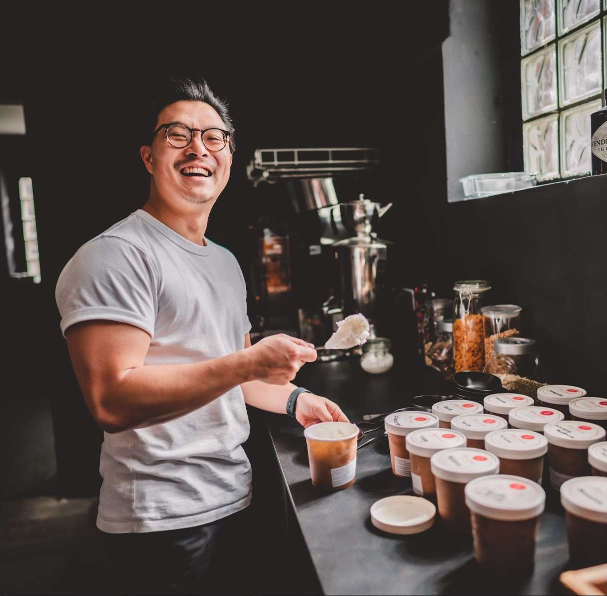 Im OMR Campus erwartet dich ein großes Angebot an Snacks & Drinks: von frischgepresstem Saft und selbstgebackenem Brot, über Müsli und Sweets bis hin zu Kaviar.