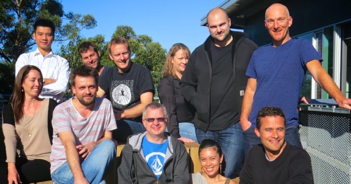 Das Selz-Team – rechtsaußen im blauen T-Shirt Mitgründer Martin Rushe, in der Mitte im schwarzen Shirt CTO und Mitgründer Mathieu Kempé (Quelle: Macdoch Ventures)