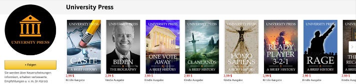 Ein Blick ins „Verlagsprogramm“ von „University Press“ (Screenshot von Amazon.com)