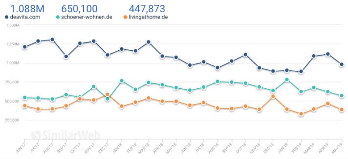 Laut Schätzungen des Statistik-Tool-Anbieters Similarweb verzeichnet Deavita.com mehr Besucher als die Websites von Schöner Wohnen und Living at Home