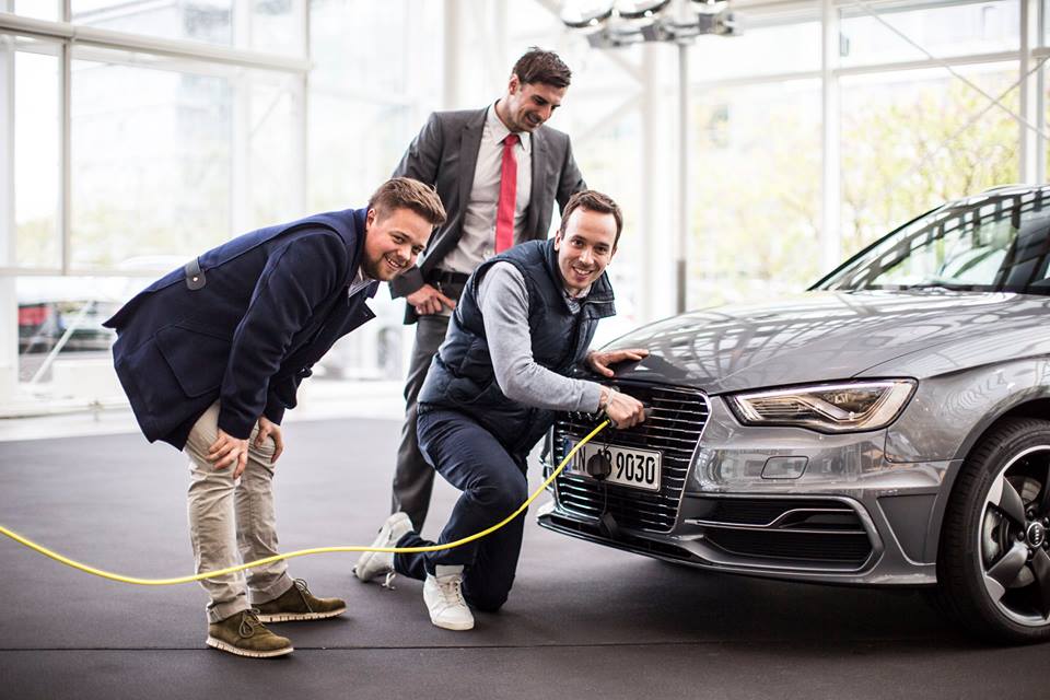 Audi ist langjähriger Mobilitätspartner bei unseren Veranstaltungen und wird bei der Rockstars Aftershow in Köln und der Konferenz im Februar noch eine Schippe drauflegen. Wie das gehen kann, durften Philipp und Jasper schonmal ausprobieren. Nach einem Fahrtraining im Audi TT S und S4 Avant sind die beiden jetzt bereit für Hamburgs Straßen. In Ingolstadt durften sie aber nicht nur auf der Strecke Gas geben. Im Audi „Driving Experience Center“ standen ein paar Rennwagen zum Probesitzen bereit. Besonders im Fokus: Die Elektromobilität, bei der die Ingolstädter nicht erst seit den Le Mans-Siegen der e-tron-Modelle 2011, 2012 und 2014 ganz vorn mit dabei sind. Wie passend, dass das neue Rockstars-Mobil auch mit Strom fährt. Philipp und Jasper durften nämlich einen grauen Audi A3 e-tron in der Familie willkommen heißen. Also Augen auf ihr Hamburger! Der Elektro-Audi wird nur so an euch vorbei surren. Unten gibt’s die Foto-Lovestory.