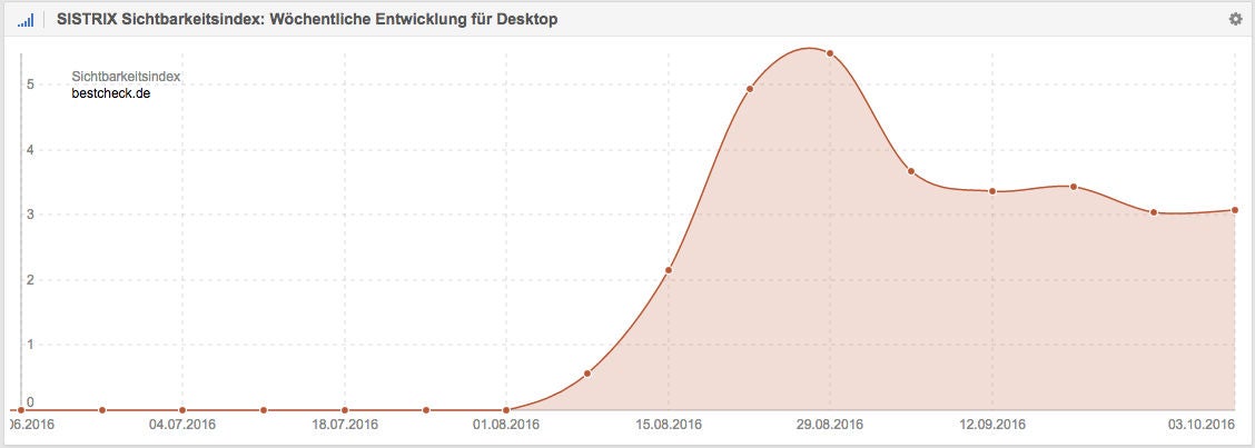 Die Entwicklung der Google-Sichtbarkeit von Bestcheck.de laut Sistrix