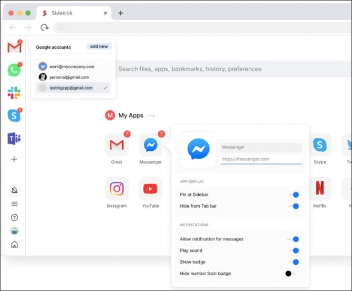 In Sidekick können die Nutzer Apps in einer Sidebar organisieren und so schnelleren Zugriff auf Gmail, Slack oder andere Anwendungen erhalten (Screenshot: Sidekick)