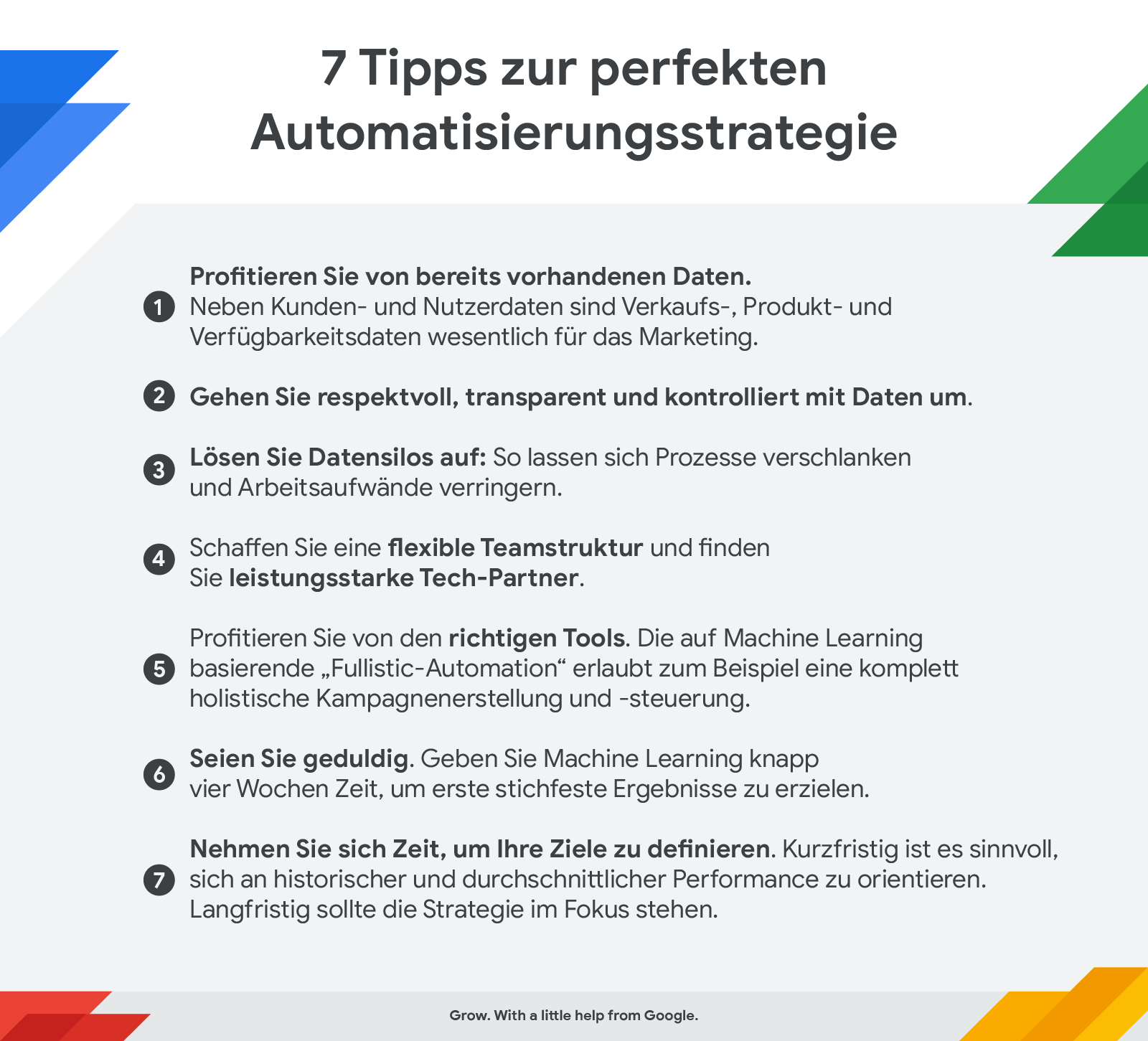 Das Marketing verändert sich rasant vor unseren Augen. Die Nutzer erwarten bestmöglich auf ihre Bedürfnisse zugeschnittene Angebote in Echtzeit. Das ist nur noch mit datengetriebenem Marketing möglich. Hier geben Euch Google-Experten geben gleich sieben Tipps zur erfolgreichen Automatisierungsstrategie mit.