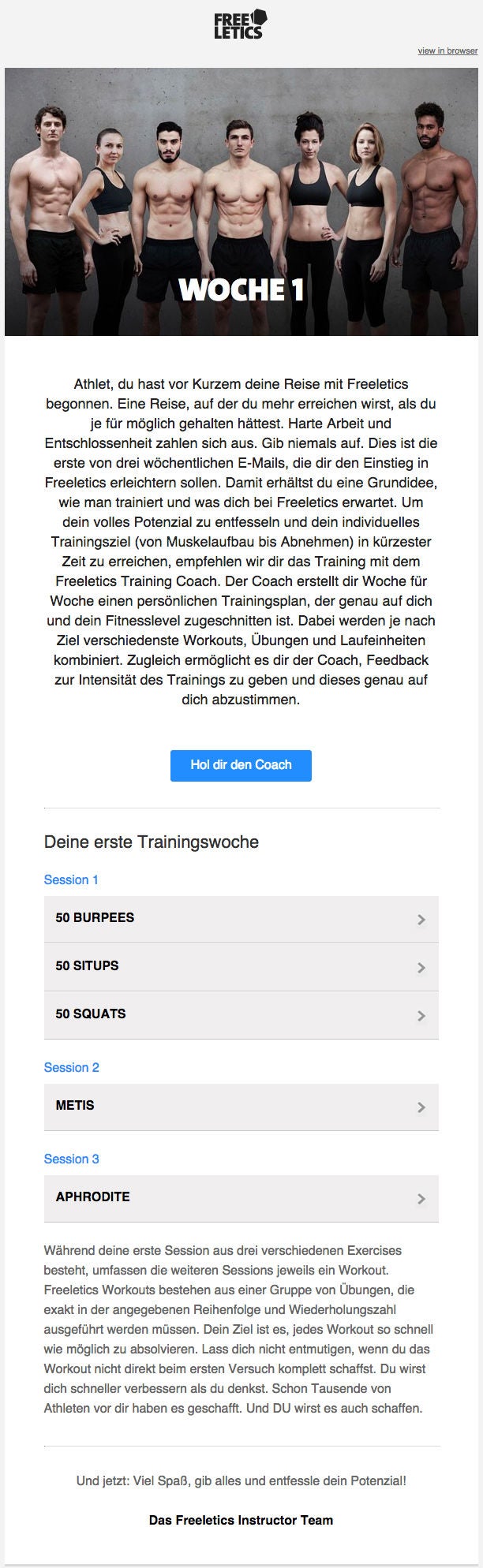 Freeletics-E-Mail an Neuanmelder bei (Klick für Komplettansicht)
