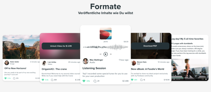 Für die jeweilige Industrie biete Fanbase jeweils ein passendes Format. „Die Plattform darf nicht der limitierende Faktor sein. Über Fanbase lassen sich nahezu alle Use-Cases abbilden“, sagt Heuschele. Und Stefan Wiegard fügt hinzu: „Bei uns sollen alle Themen stattfinden – außer Pornographie und Illegales. Creator können alle Medien hosten; inklusive Videos, Podcasts, PDFs und Artikel. Und es sind Creator aller Größen willkommen. Wir wollen zusammen mit denen wachsen.“ Musiker:innen sollen zum Beispiel exklusive Konzerte über Fanbase streamen oder auch Beats als Presets verkaufen. Im Fitness-Bereich könnten Chat-Sessions, Trainings-PDFs oder -Videos verkauft werden. Künstler:innen bieten bald Vorlagen und DIY-Anleitungen an und Lifestyle-Influencer digitale Meet and Greets.