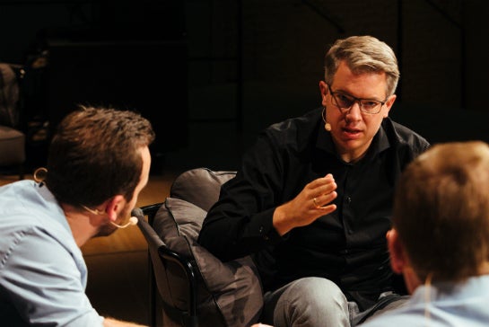 Philipp Westermeyer, Frank Thelen und Sven Schmidt im Gespräch (Foto: Hannes Holtermann / OMR)