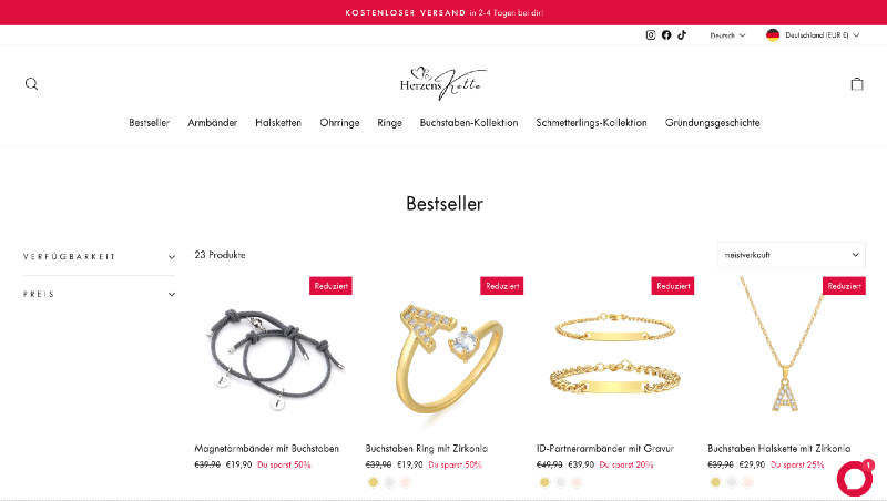 Die Bestseller-Kategorie im Online-Shop von Herzenskette (Foto: Screenshot).