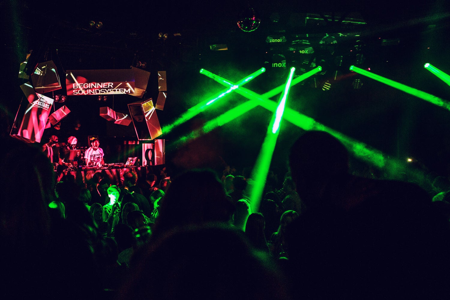 Unser Line-Up hat der tanzwütigen Masse ordentlich eingeheizt. Zwischen Flo Motion und dem Beginner Soundsystem wurde die Partymeute mit einer Performance der Flying Steps überrascht – Breakdance auf höchstem Niveau! Anschließend brachten die Hängergäng und das Bo die Halle mit gewohnter Coolness zum Beben. In den frühen Morgenstunden standen dann Cram und Cosmic Sista am Dj-Pult.