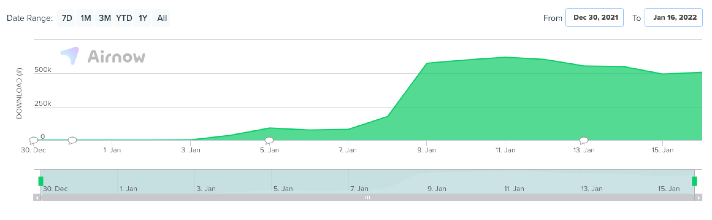 Die beeindruckenden Download-Zahlen von Locket bisher (Quelle: Airnow Data).