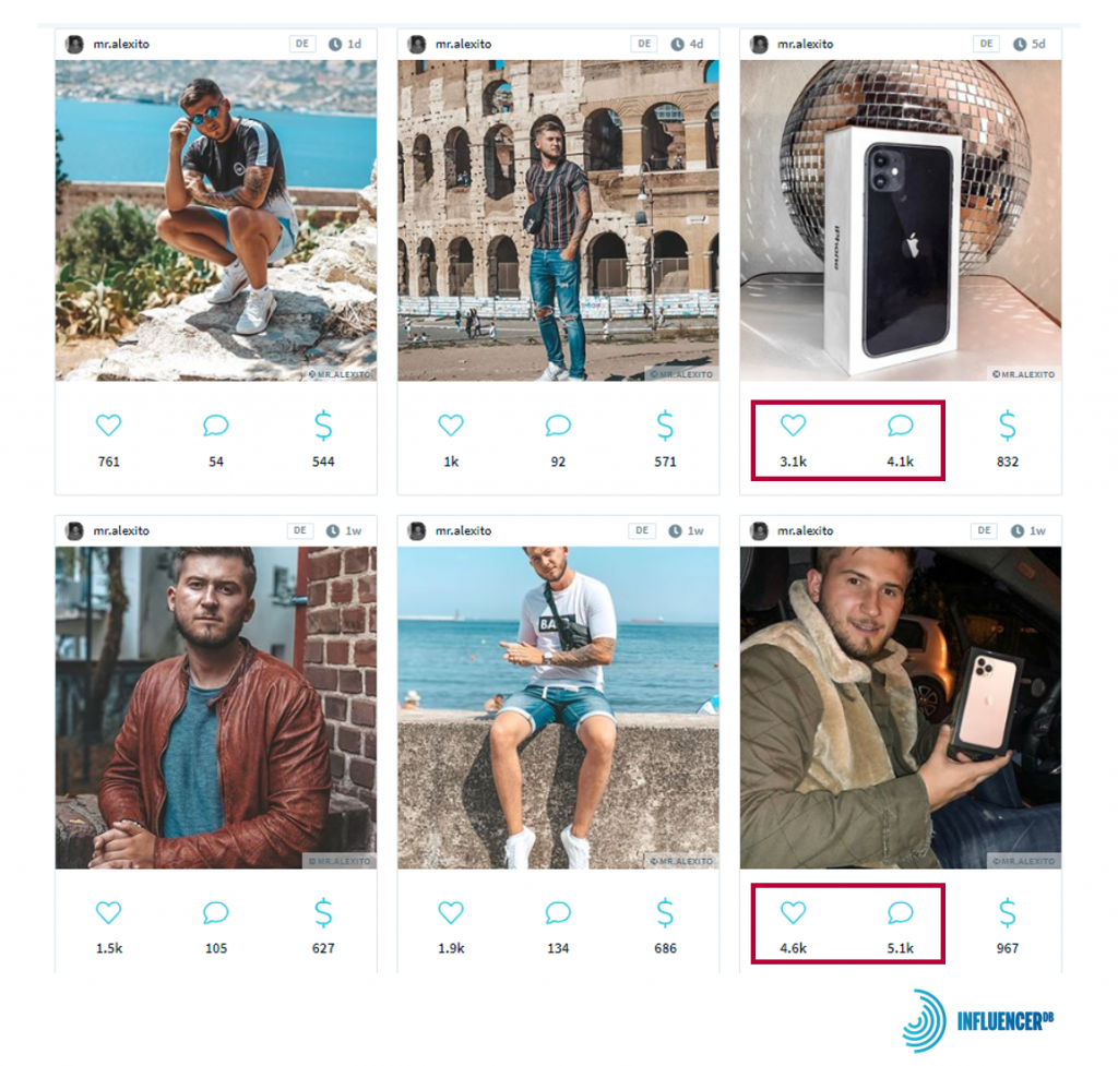 Das entspricht einem Wachstum um fast zehn Prozent durch diese Aktion. Die Langzeitfolgen sind bei ihr genauso wenig absehbar wie bei Schauspieler und Influencer Alexander Heinen alias Mr.Alexito. Der hat bereits 192.000 Follower, aber gerade bei Posts zu Loop Giveaways generiert er eine starke Performance. Das zeigen Daten von InfluencerDB.