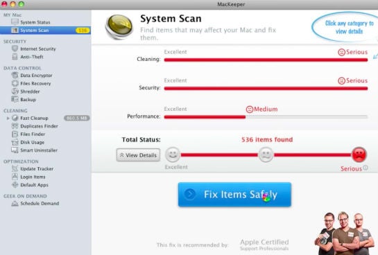 Ähnlich wie in der PC-Variante auch, sollen die MacKeeper-Nutzer mit dem Tool ihren Rechner scannen und überflüssigen Ballast entfernen können. MacKeeper zeigt etwa, welche ungenutzte Sprachversionen des Betriebssystems sowie doppelt vorhandene Dateien der Nutzer löschen kann. Hinzu kommen Funktionen zum Verschlüsseln sowie Shreddern von Daten, Erstellen von Backups sowie ein Diebstahlschutz (in Form einer Ortungsfunktion). Viele der Funktionen hat Apple selbst bereits in sein Betriebssystem integriert. Das Tool ist damit mehr oder minder redundant – jedoch nicht bösartig.