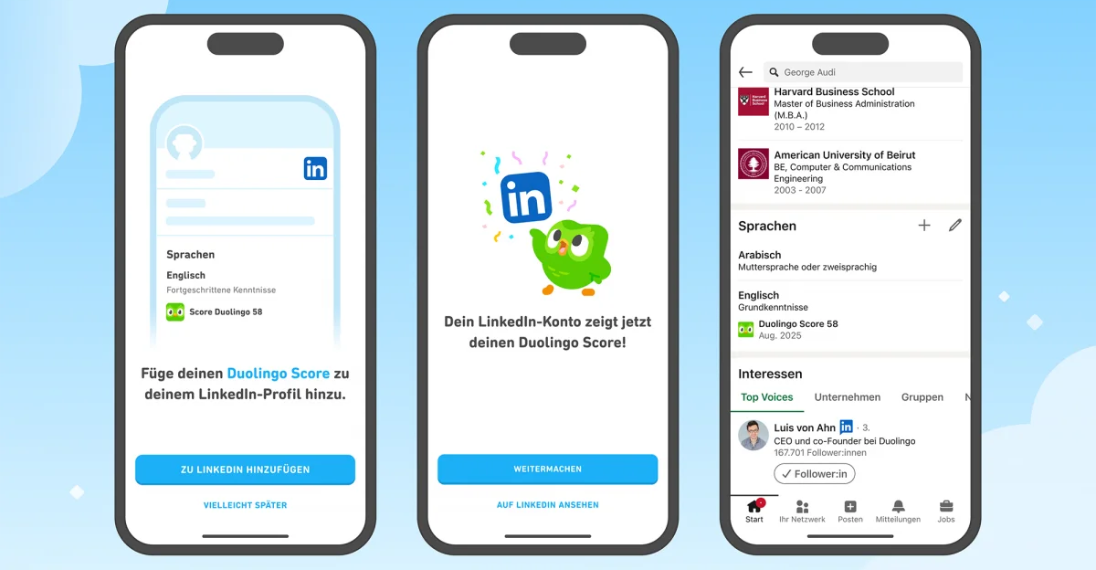 "Lernen macht eigentlich keinen Spaß. Wir nutzen Playfulness, damit die Leute die App öffnen, aber wir brauchen Credibility, damit sie bleiben", erklärt Audi. "Die Partnerschaft mit Linkedin verwandelt den spielerischen Zeitvertreib in ein verifizierbares Karrieremerkmal." Der Anspruch geht dabei über eine einzelne Kampagne hinaus. "Sprachkenntnisse sind oft subjektiv. Unser Ziel ist es, den Duolingo-Score als globalen Standard zu etablieren – so anerkannt wie andere Bildungszertifikate, aber direkt integriert in den professionellen Alltag auf Linkedin."