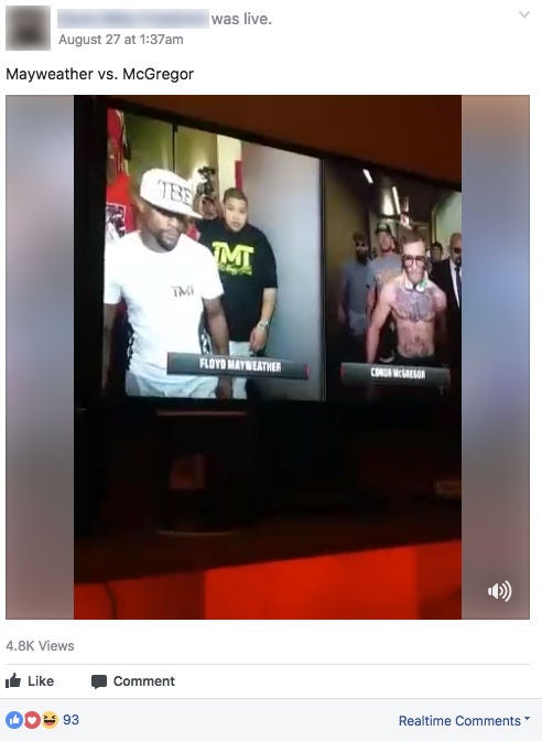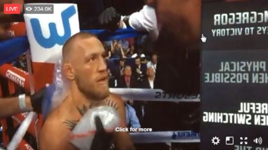 Ein Screenshot eines illegalen Facebook-Live-Streams des Mayweather-McGregor-Kampfes mit 234.000 Zuschauern (Quelle: Irdeto / Forbes)