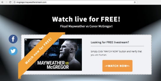 Die Website mcgregormayweatherstream.com verspricht einen kostenlosen Livestream (Screenshot)