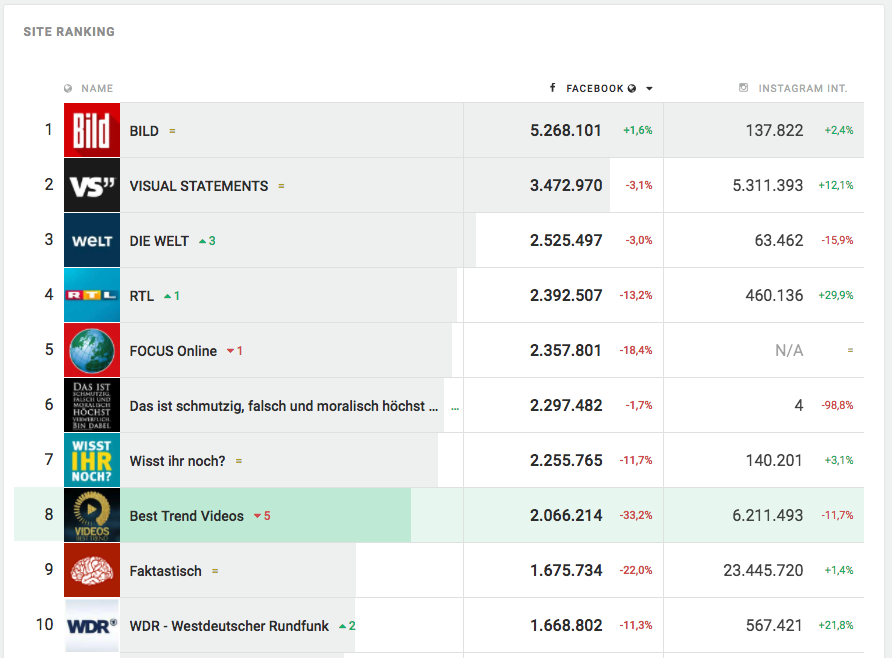 Nicht nur in Sachen Video-Views kann Best Trend Videos aktuell überzeugen. Auch nach Interaktionen, also der Summe von Likes, Comments und Shares, hat sich die Seite von Selim Mohammed in den deutschen Top 10 festgesetzt. Laut des Statistikdienstes Storyclash landete Best Trend Videos im Dezember 2017 mit knapp über zwei Millionen Interaktionen auf dem achten Platz.