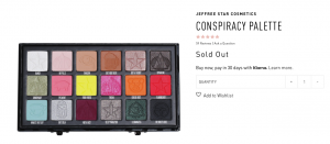 Deshalb sollen Anfang 2020 auch je 60.000 neue Paletten der Conspiracy- und Controversy-Reihe verkauft werden. Mehr sei derzeit noch nicht möglich, da ein Engpass für eine Farbe besteht und die Produktion Zeit in Anspruch nimmt, wie Jeffree Star selbst angibt: „Wenn Du Dir die Serie ansiehst, weißt Du, dass wir lange gebraucht haben, um alles zusammenzubringen. Also wollen wir transparent sein. Jetzt, da alles fertig ist, können wir die Dinge viel schneller angehen, aber es wird noch zwei oder drei Monate dauern – realistisch betrachtet.”