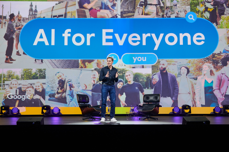 Die Vision von Google war schon immer, Informationen und Technologie für alle zugänglich zu machen. Dieses Element bildet auch heute die Basis für die Weiterentwicklung der Google AI – wie der Titel der Keynote schon zeigt: „AI for Everyone“. Philipp Justus rückte in seiner Keynote das Thema Verantwortung in den Vordergrund. Bereits 2018 hat Google eine Reihe von Leitlinien für eine verantwortungsvolle KI-Entwicklung aufgestellt. Das Ziel müsse es sein, mit künstlicher Intelligenz das Leben aller Menschen zu verbessern und weltweite Probleme zu lösen – gemeinsam.