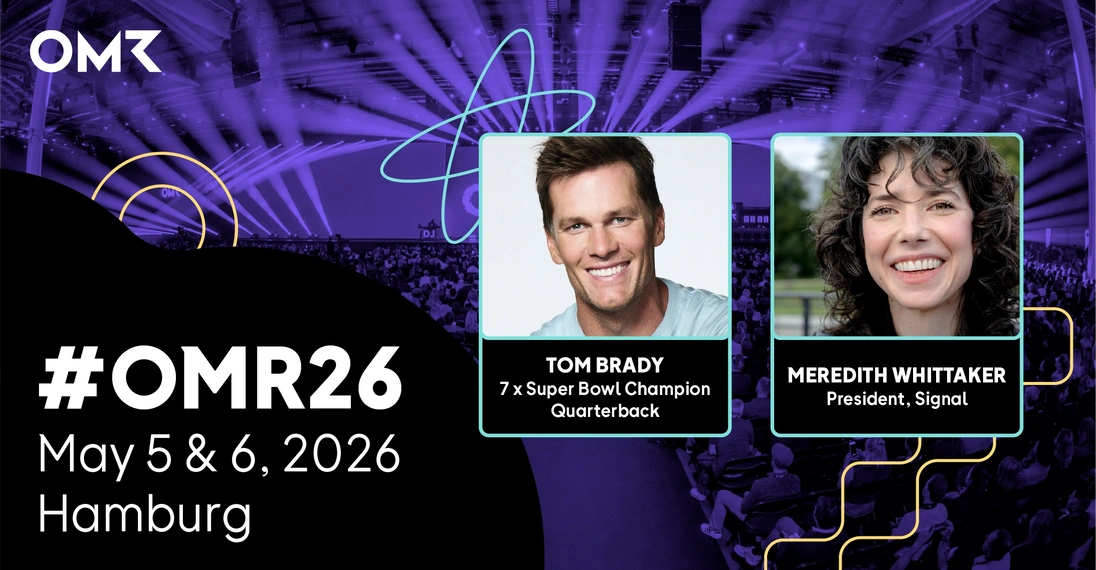 Nach OMR25 ist vor OMR26. Und damit du schon jetzt eine erste Idee davon bekommst, was wir am 5. und 6. Mai 2026 in der Hamburg Messe vorhaben, veröffentlichen wir heute – so früh wie noch nie – die ersten Speaker*innen. Mit dabei: Football-Legende Tom Brady und Meredith Whittaker, President vom Messenger Signal.