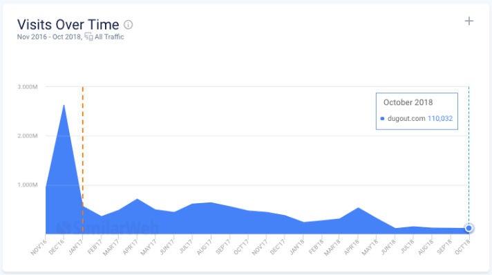 Die Entwicklung des Traffics von Dugout.com nach Schätzung von Similarweb