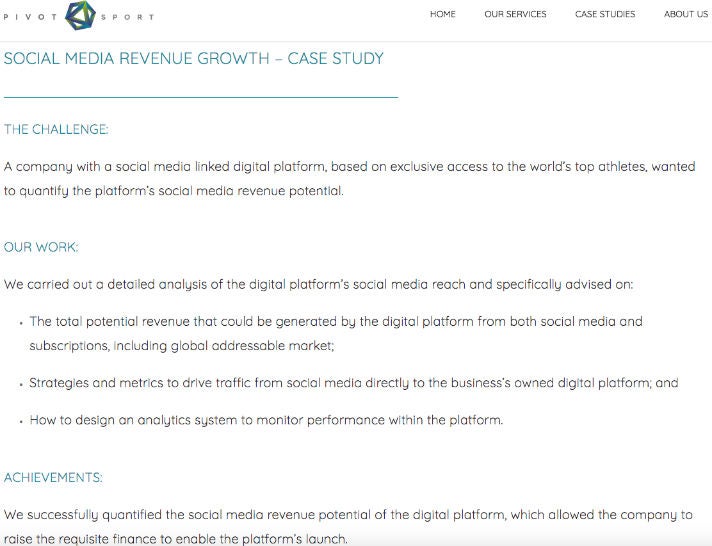Eine Case Study auf der Website des Otro-Gesellschafters Pivot Sport (Screenshot)