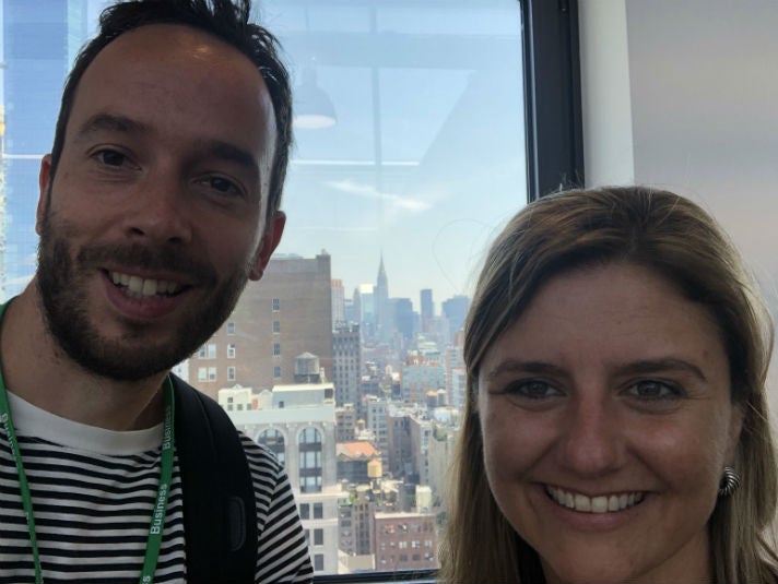 Nach dem Frühstück habe ich mich auf den Weg zum Facebook-Büro in NY (über 3.000 Mitarbeiter) gemacht. Vor dem Termin verschickt Facebook schon reichlich E-Mails mit Anmeldebestätigung usw. Das Büro ist dann sehr schick und wie so häufig in NY nicht weit weg vom Union Square. Kristin Reagan hat mir die Dachterrasse gezeigt und wir haben natürlich über OMR 2019 gesprochen. Facebook ist für uns ein großer Partner und Kristin schaut sich auf der ganzen Welt Events an, es gab also reichlich Gesprächsstoff. Als ich bei Facebook raus kam war es Mittag und 33 Grad in NY. Ich bin dann langsam vom klimatisierten Sneaker-Laden zum WLAN-Cafe (Datenvolumen aufgebraucht) und langsam wieder runter nach Tribeca gegangen.