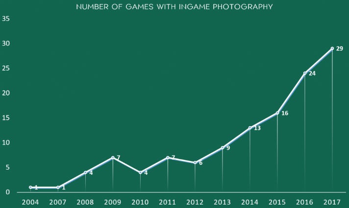 Davor hatte das niederländische Gaming-Haus Guerilla Games mit dem Photo Mode Rollenspiel „Horizon Zero Dawn“ (2017) nach Ansicht vieler in der Branche neue Maßstäbe gesetzt. Die umfangreichen Bearbeitungsfunktionen brachte in Zusammenspiel mit dem ästhetischen Game Design viele Nutzer dazu, in Foren über viele Seiten hinweg eigene Screenshots zu posten. „Es ist eine merkwürdige, vielleicht sogar zynische Betrachtungsweise, aber einer unserer Programmierer sagte einmal: ‚Das ist, als ob wir das Marketing crowdsourcen.'“, zitiert Game Informer den Guerilla-Games-Art-Director Jan-Bart van Beek. „Man versammelt alle Fans, und die helfen dir, das Spiel von seiner schönsten Seite zu zeigen.“