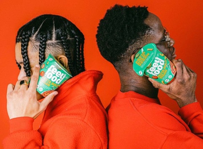 Zwei Pola-Models werben für Fünf-Minuten-Terrinen des Startups Feel Food. Foto: Adrian Ballosch/Feel Food