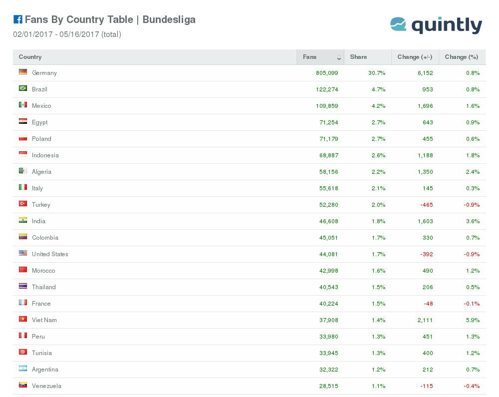 Aus diesen Ländern stammen die meisten Fans von Brinkerts Bundesliga-Facebook-Seite (Quelle: quintly.com).