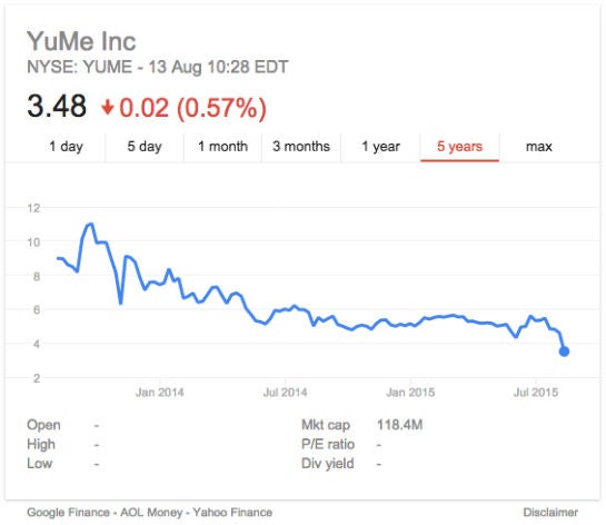 Der Verlauf der YuMe-Aktie seit dem Börsengang im August 2013.