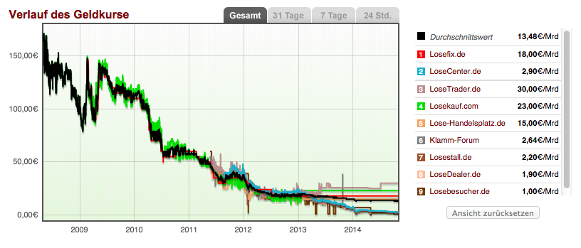 Der Wertverlauf der Klammlose. (Screenshot: losepreis.de)