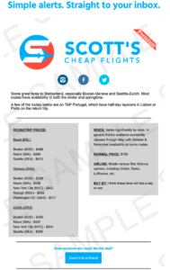 Ein Beispiel-Newsletter (Quelle: Scott’s Cheap Flights)