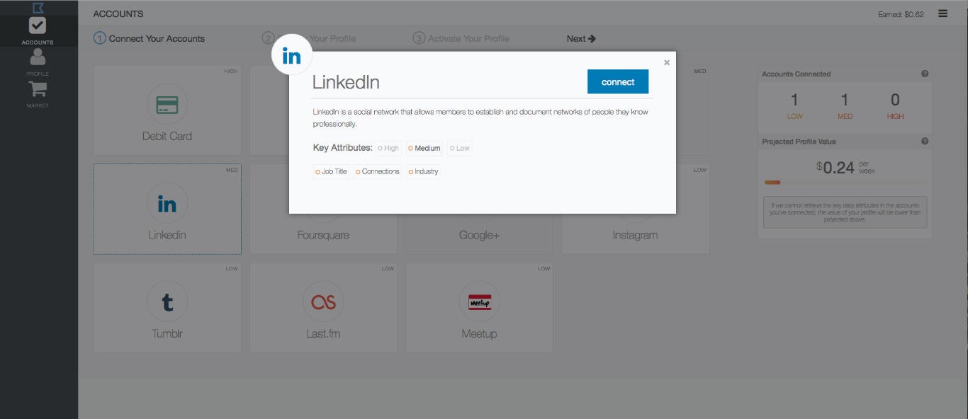1. Über Plattformen wie Datacoup, Meeco und Handshake sollen User ihre Profildaten verkaufen können – wir haben’s ausprobiert