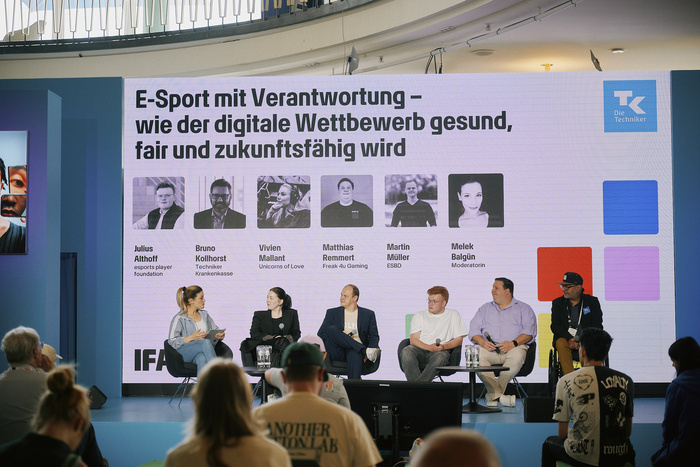 Wie wichtig das Thema Gesundheit im Gaming-Bereich ist, zeigte sich dann auch in einem weiteren TK-Panel auf der IFA – diesmal zum Thema E-Sport. Millionen Fans verfolgen Wettbewerbe in "League of Legends" oder "Counter-Strike", und für viele Jugendliche sind Top-Spieler*innen heute echte Stars. "Das Thema ist in der Gesellschaft angekommen", sagt Bruno Kollhorst, bei der TK für E-Sport verantwortlich. Auch hier geht es um Gesundheit: E-Sport erfordert nicht nur Reaktionsschnelligkeit, sondern auch körperliche Fitness und mentale Stärke. Profis trainieren längst wie Leistungssportler – was fehlt, sind Strukturen wie Nachwuchsförderung oder Trainerausbildung.