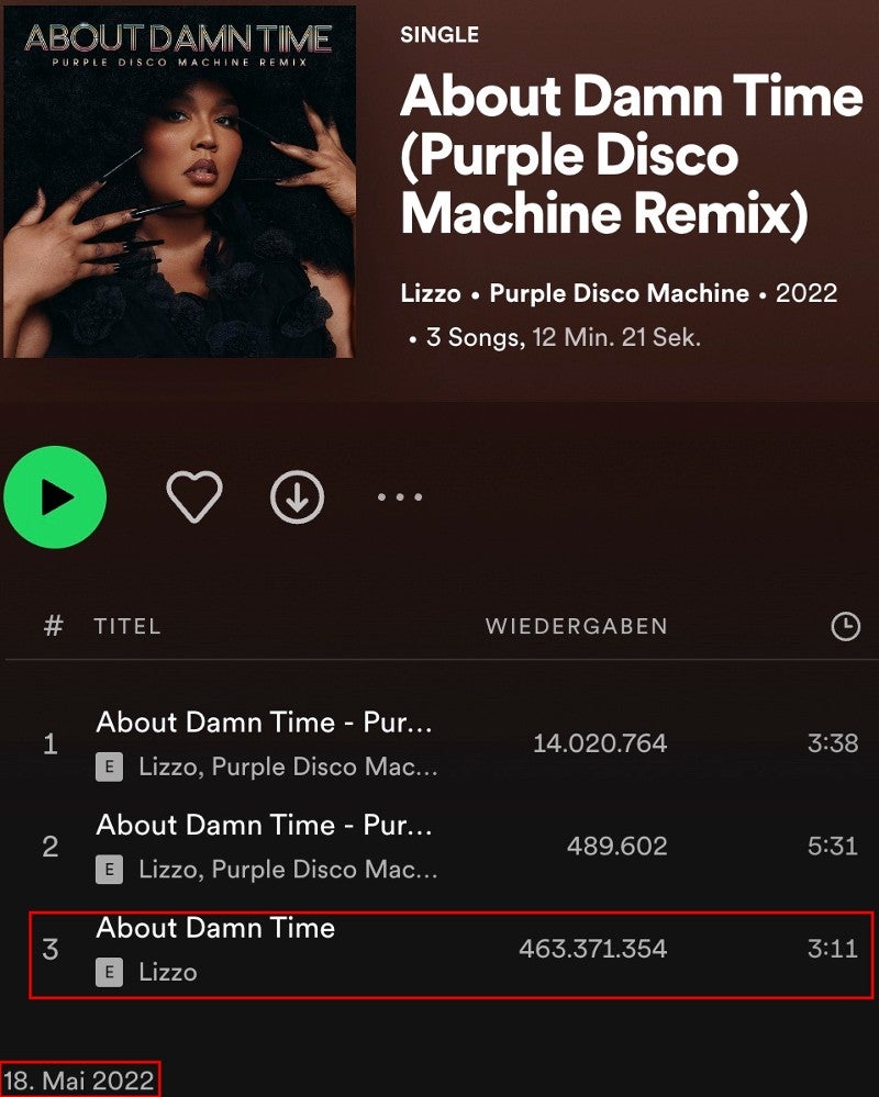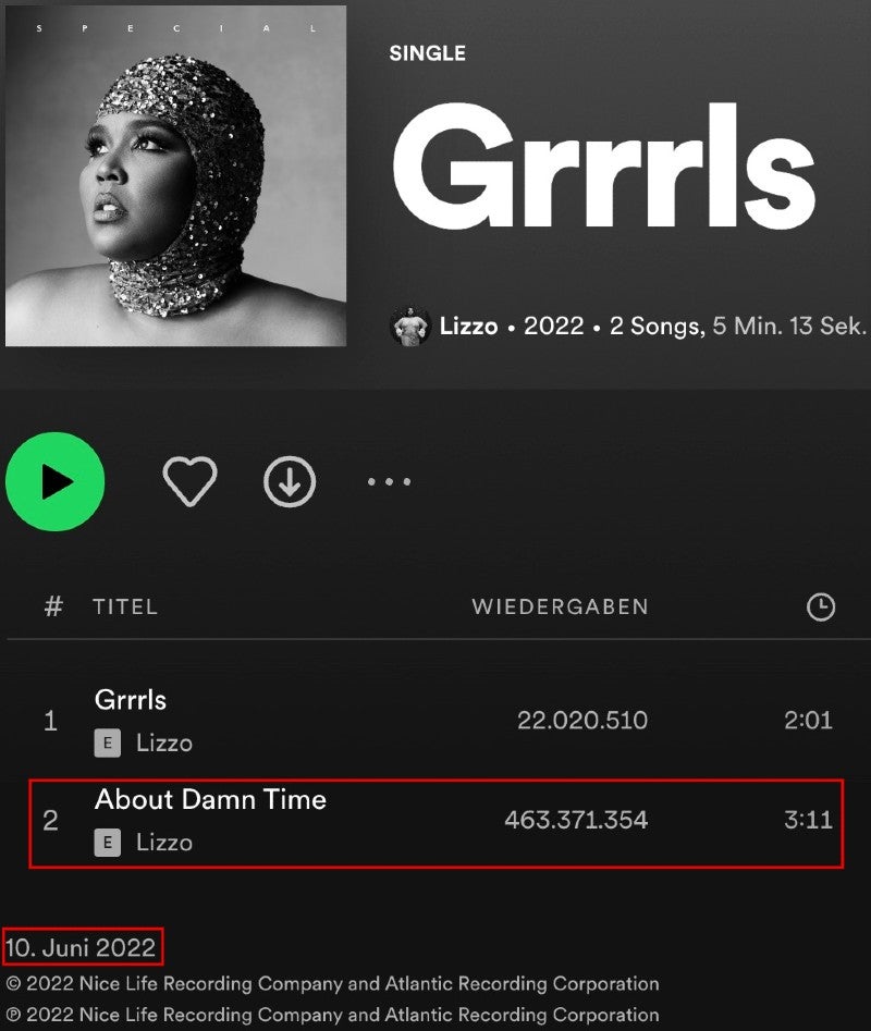 Die Gründe für dieses Vorgehen sind so simpel wie einleuchtend: Die Künstler*innen kontrollieren auf diese Weise selbst, was die Spotify-Nutzer:innen nach ihrem neuesten Song als nächstes zu hören bekommen. Anstatt dass der Spotify Algorithmus den Song eines anderen Künstlers oder einer anderen Künstlerin abspielt, bekommen die Hörer*innen nochmals die vorherige Single zu hören. Und die sammelt auf diese Weise immer höhere Abrufzahlen an. Heute weist Spotify für „About Damn Time“ 463 Millionen Streams aus. Er ist damit der dritterfolgreichste Song der Sängerin. Dazu beigetragen dürfte neben dem Umstand, dass der Song auch auf Tiktok viral gegangen ist, die Veröffentlichungsstrategie relevant beigetragen haben.