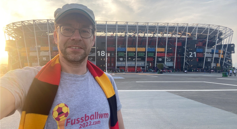 SEO-Experte Nils Römeling vor dem Stadium 974 in Doha (Foto: Nils Römeling).