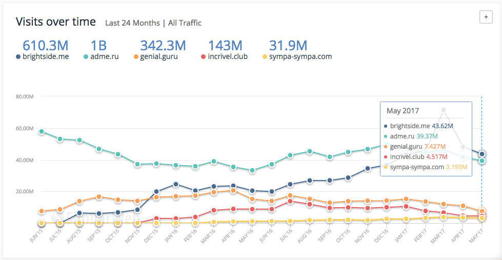Der Traffic der Websites von TheSoul Publishing laut SimilarWeb.
