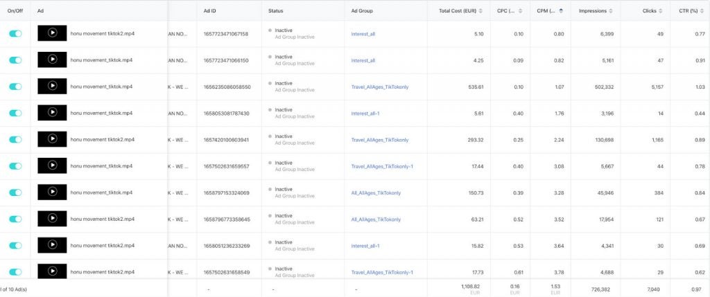 Nun, wie interpretieren wir diese Zahlen? Zunächst einmal wird deutlich, dass TikTok ein unglaublicher Reichweitenkanal ist. 1,3 Millionen Impressionen für 500 Euro? In diesem Moment fallen vermutlich diverse Facebook Advertiser unter Euch Lesern in Ohnmacht. Eine solche Reichweite mit einem derartigen Budget zu generieren, dürfte aktuell auf kaum einer anderen Plattform möglich sein.