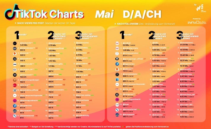 Das gesamte Ranking der wichtigsten Creator:innen und Brands des Monats Mai gibt es hier zu sehen: