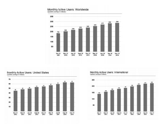 Die Nutzerzahlen von Twitter stagnieren – vor allem in den USA. (Foto: Twitter Annual Report)