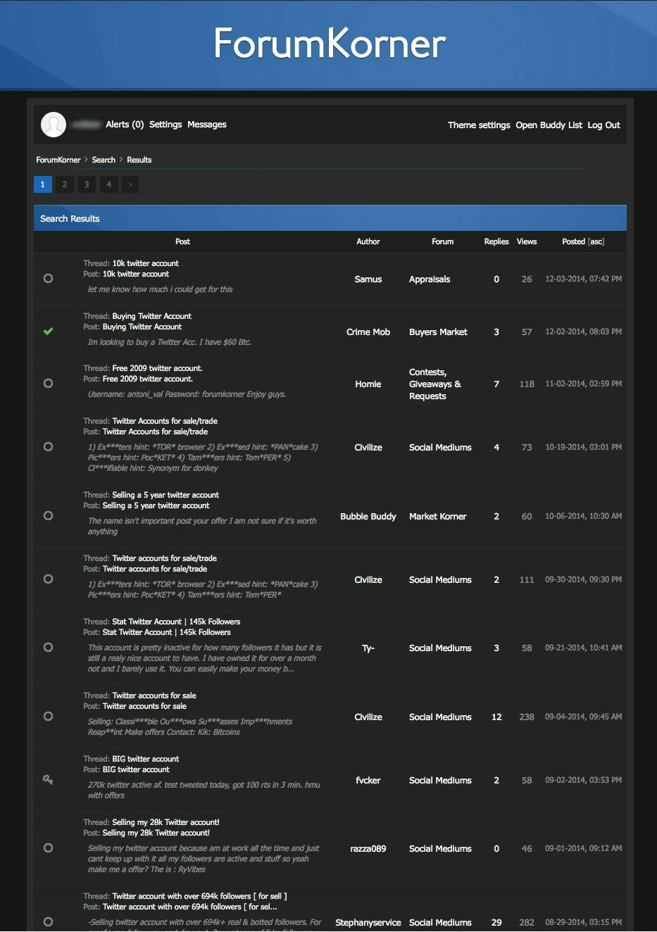 Angebote zum Kauf von Twitter-Accounts bei ForumKorner