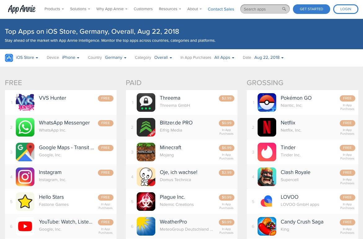 Schon am ersten Tag des Releases kletterte „VVS Hunter“ in Apples App Store auf den ersten Platz aller Gratis-Apps (Quelle: appannie.com).