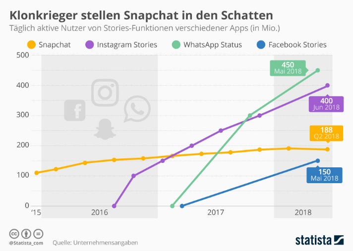Die Entwicklung der Nutzerzahlen des Story-Formats auf den verschiedenen Plattformen (Grafik: Statista)