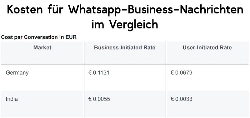 In Indien ist es für Unternehmen deutlich günstiger als in Deutschland, über Whatsapp Nachrichten an Kund*innen zu verschicken (Preistabelle: Meta, bearbeitet von OMR)