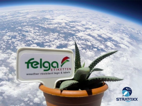 Kaktus über der Erde: Mit dem unbeschädigten Label wirbt Felga in der Stratosphäre. (Foto: Stratoxx)