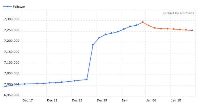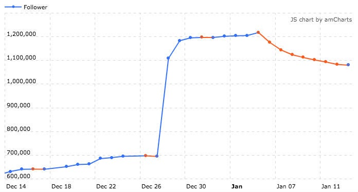 Ein Viertel der neu gewonnen Follower ist schon wieder weg