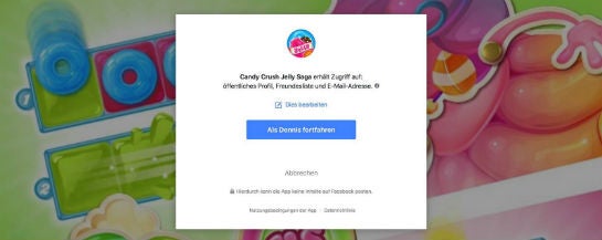 Rund 270.000 Leute haben diesen Psychotest genutzt und dafür — Achtung! — wissentlich ihr Einverständnis gegeben, Daten wie den Wohnort und die Gefällt-mir-Angaben bei Facebook auszulesen. Das Bestätigungsfenster dafür kennt ihr mit Sicherheit auch. Es erscheint auch, wenn ihr “Candy Crush” spielen oder euch mit eurem Facebook-Login bei anderen Onlinediensten wie Spotify oder Tinder anmelden wollt.
