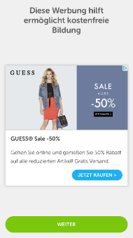 Obwohl Gründer von Ahn kein großer Fan von Werbung ist, sind mittlerweile Ads in der App zu sehen – der Gründer spricht von Tests. Zwischen den Übungen werden Nutzern Anzeigen per Google Adsense ausgespielt. Legt man die verhaltene Schätzung von einem Euro pro 1.000 Werbeimpressionen und 30 Millionen Nutzer pro Tag zu Grunde, die jeweils nur eine Anzeige ausgespielt bekommen, so ergibt das 30.000 Euro Umsatz pro Tag für Duolingo – nur mit Werbeeinnahmen. Das scheint aber auch mehr als nötig zu sein. Laut eigener Aussage kostet der Betrieb der App 42.000 US-Dollar pro Tag. Zusätzlich plant Duolingo den Verkauf von virtuellen Gütern per In-App-Kauf. Es gibt schon jetzt verschiedene Outfits für die Eule, die durch die Übungen führt.